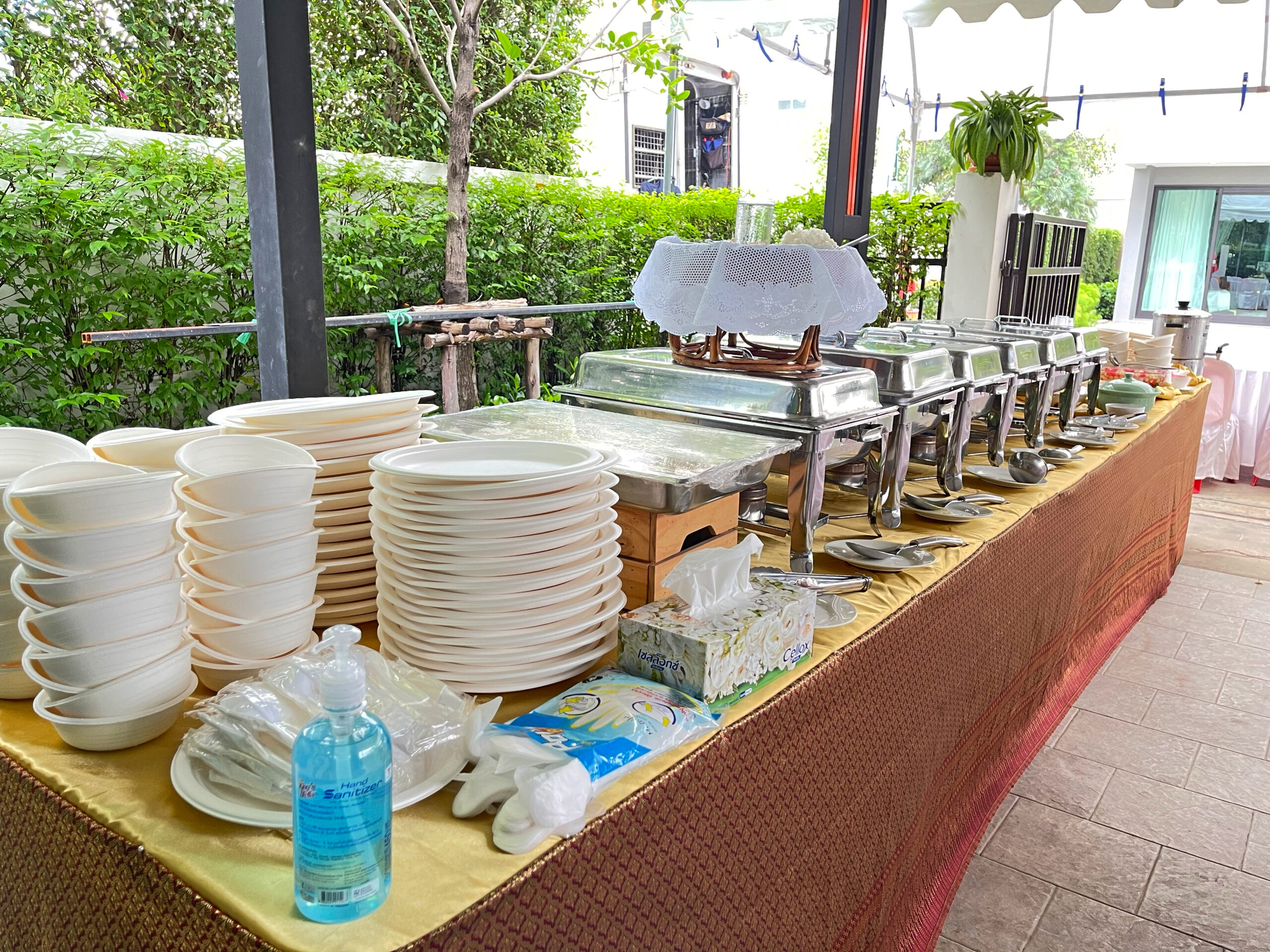 - ชุดจานชาม ช้อนส้อม แก้วน้ำ กระดาษทิชชู่ และไม้จิ้มฟัน