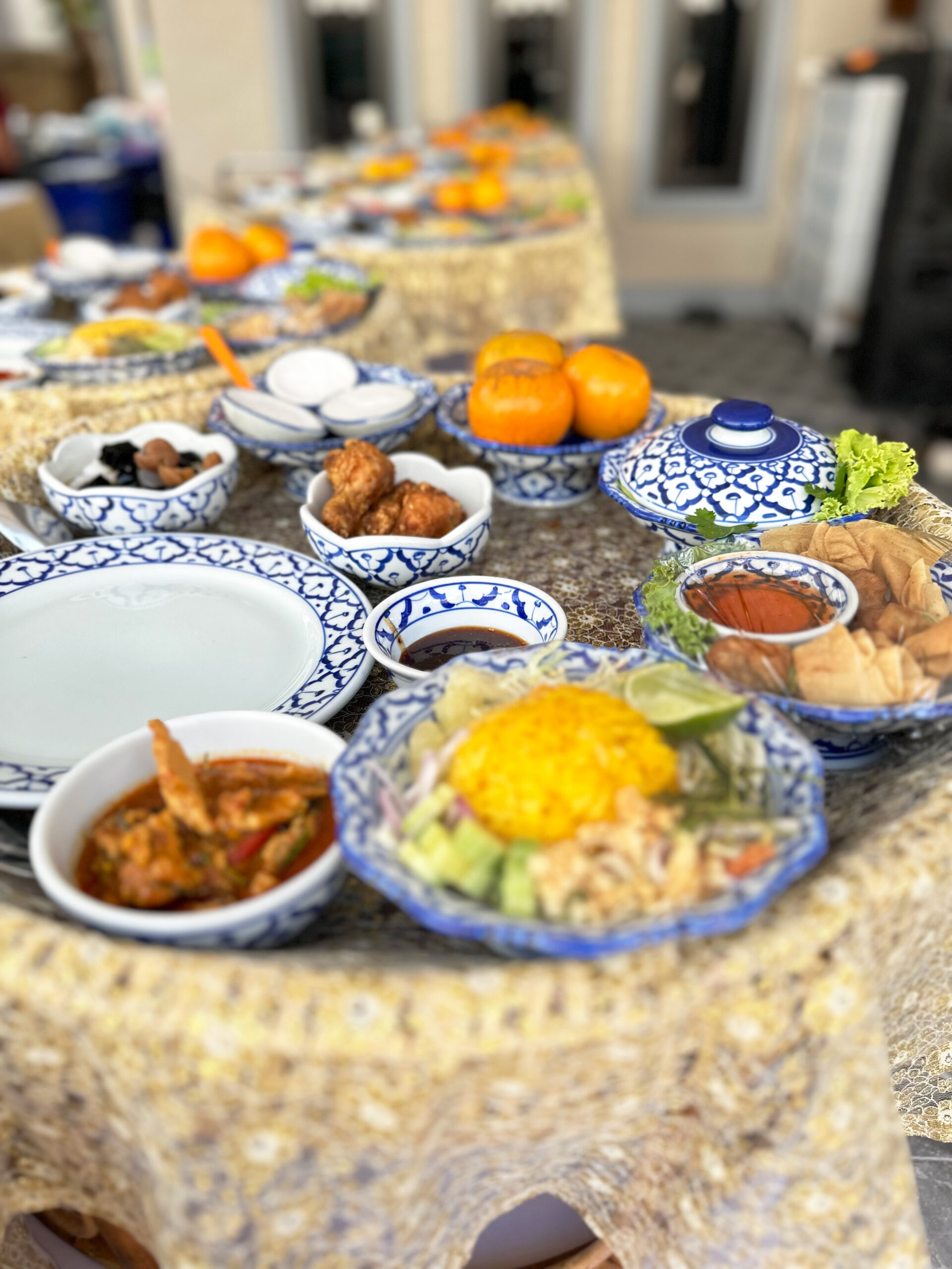 - อาหารเลี้ยงพระ จัดเตรียมอาหารเป็นชุดขันโตก (สำหรับถวายพระพุทธ 1ชุด และพระสงฆ์ 9ชุด)